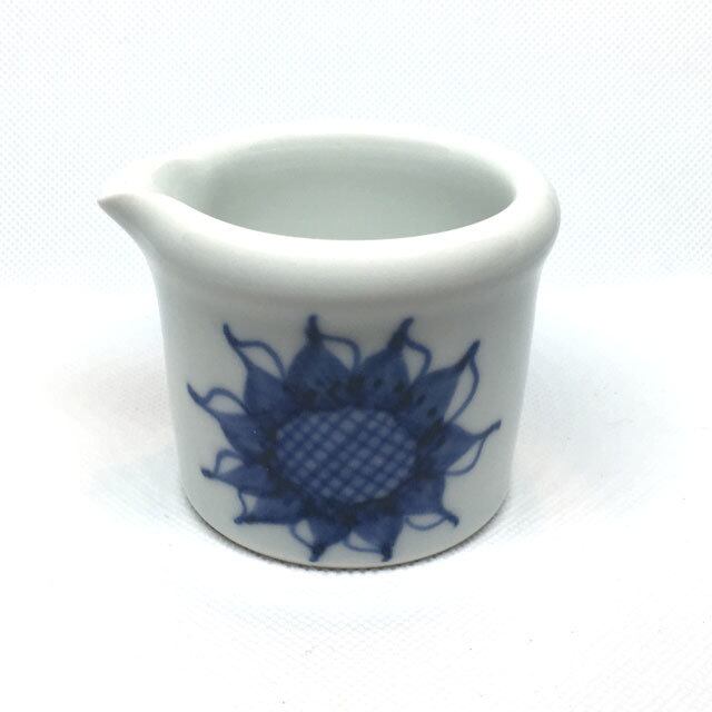 ミルクのクリーマーとしてはもちろん、タレ・お醤油入れ、ドレッシング鉢にと、あると何かと便利な片口鉢。砥部焼らしいぽってりとした、丸みのある玉縁がポイントです。呉須の濃淡を生かし、流れるような筆さばきでしっかり描かれたひまわり柄、手描きの豊かさ、愉しさを存分に味合わせてくれます。